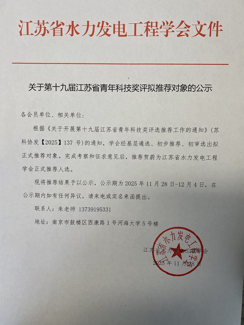 关于第十九届江苏省青年科技奖评拟推荐对象的公示