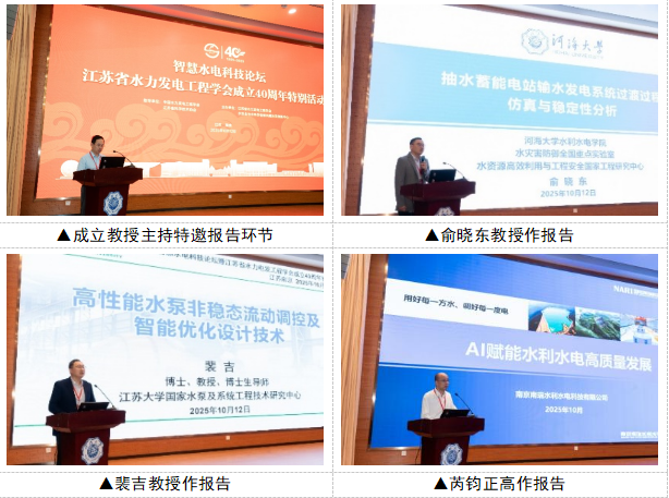 2025年10月12日,由中国水力发电工程学会、江苏省科学技术协会指导,江苏省水力发电工程学会、水安全与水科学省部共建协同创新中心主办的“智慧水电科技论坛暨江苏省水力发电工程学会成立40周年特别活动”在南京河海大学隆重举行。来自河海大学、南京水利科学研究院、国电南瑞科技股份有限公司、扬州大学、南水北调东线江苏水源有限责任公司、国电南京自动化股份有限公司、江苏省河道管理局等水电领域的近30家单位、130余位专家学者及师生代表齐聚一堂,共同见证江苏省水力发电工程学会成立四十周年的辉煌历程,并探讨智慧水电与新能源融合发展新路径。