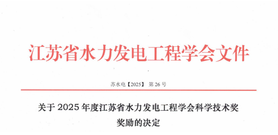 关于2025年度江苏省水力发电工程学会科学技术奖奖励的决定