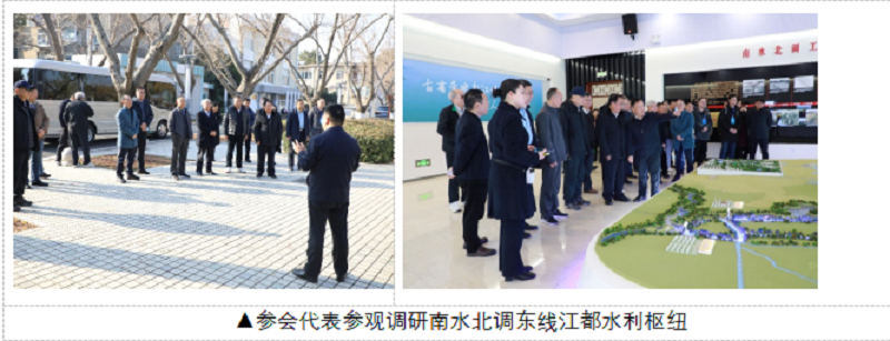 当天下午,参会代表参观调研了南水北调东线江都水利枢纽。作为南水北调东线的源头,江都水利枢纽工程自开工建设以来一直承载着地区乃至国家水利领域的重要任务。代表们参观了南水北调江苏集控中心、江淮明珠展览馆、江都泵站,重温我国水利自主发展的重要历程,观摩现代化智慧水利工程数字孪生技术应用,在接受历史荣誉熏陶的同时,也对今后水利行业高质量发展充满信心。