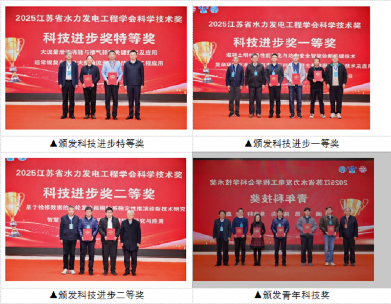 开幕式上颁发了“2025年度江苏省水力发电工程学会科学技术奖”。学会副理事长、中国工程院院士胡亚安宣读了奖励决定,学会2025年度共评选出科学技术奖12项,包含7项科技进步奖和5项青年科技奖。颁奖环节,各奖项代表陆续上台领奖,由省科协副主席、学会理事长、副理事长等分别颁发荣誉证书。
