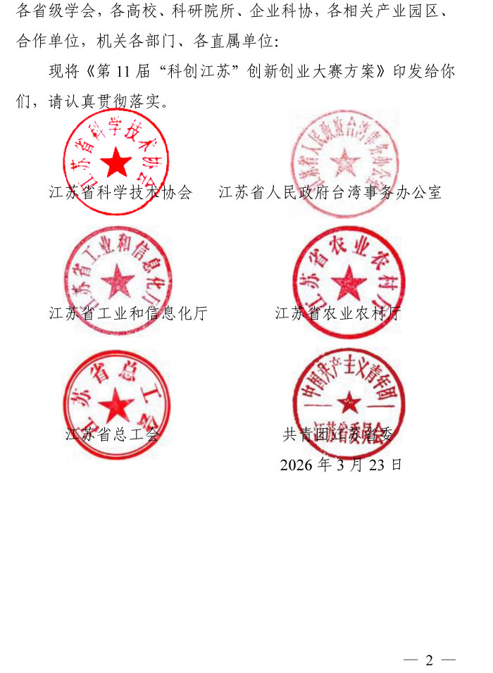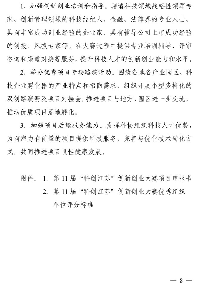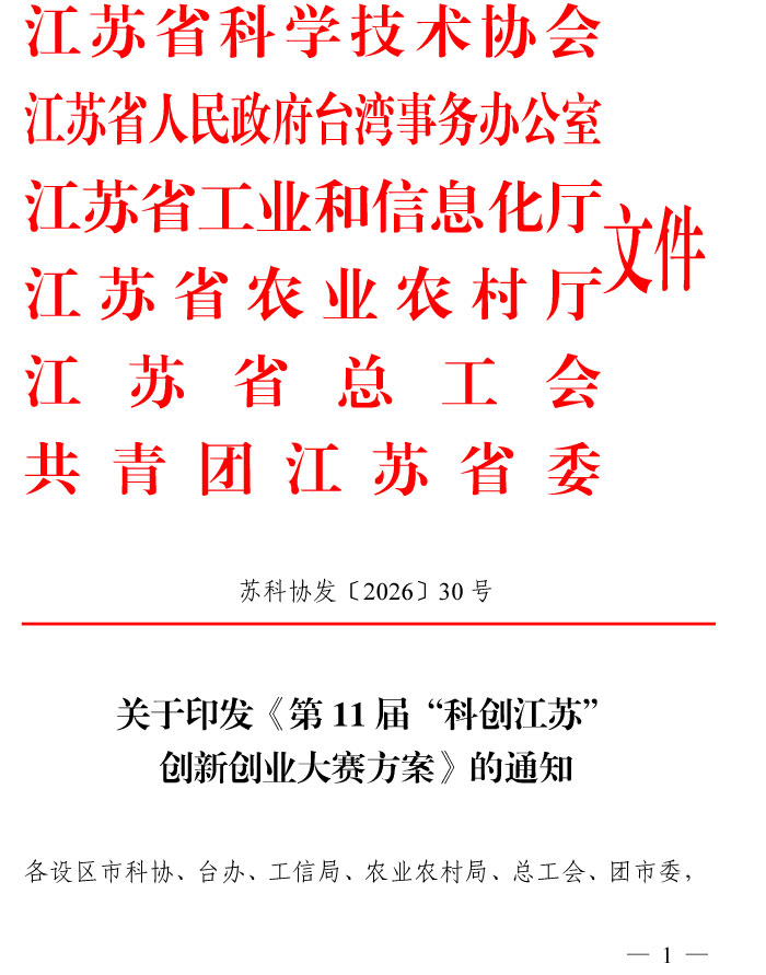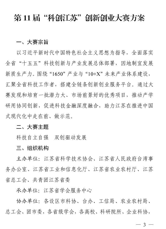 转发关于印发《第11届“科创江苏”创新创业大赛方案》的通知